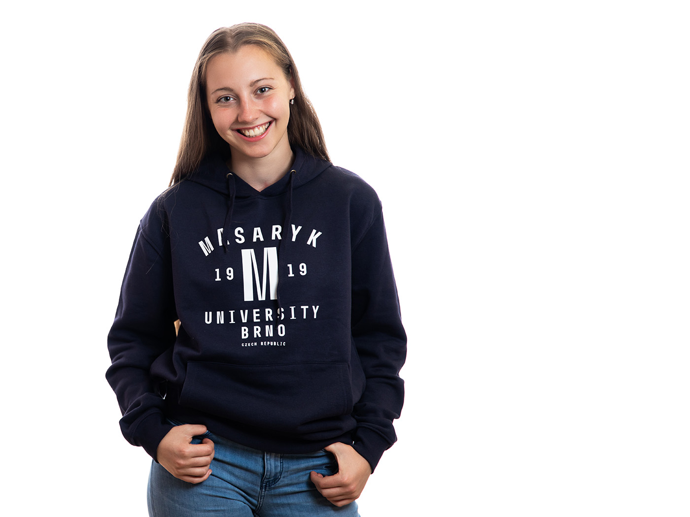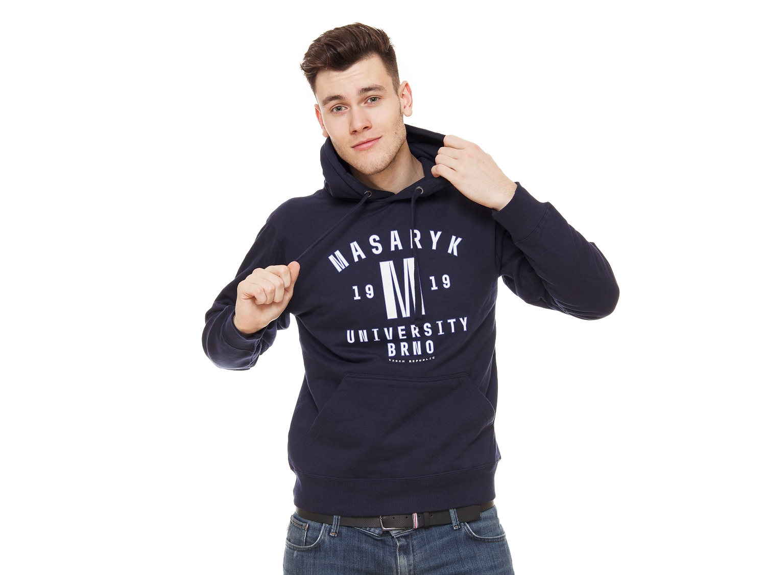 Practical hooded sweatshirt, over the head. Inspired by the American style with the inscription Masaryk University on the chest. Suitable for school, travel and sports! Uniform women's / men's cut.