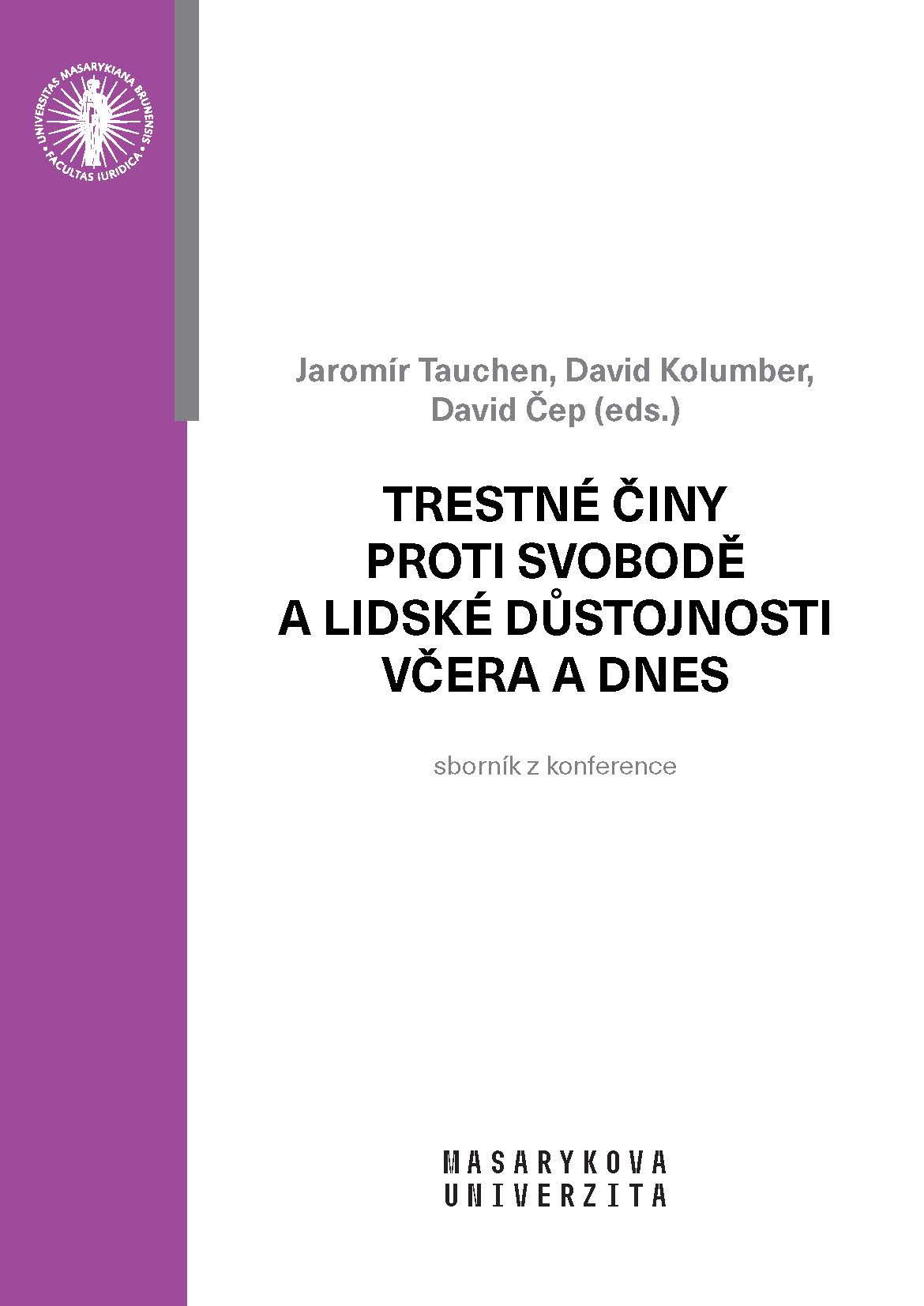 The collection presents the output of the conference Criminal acts against freedom and human dignity yesterday and today. It has a legal historical part, which is devoted to the development of the prosecution of crimes against freedom and human dignity, and a criminal law part, which is focused on the current legislation in the Czech Republic and the Slovak Republic.